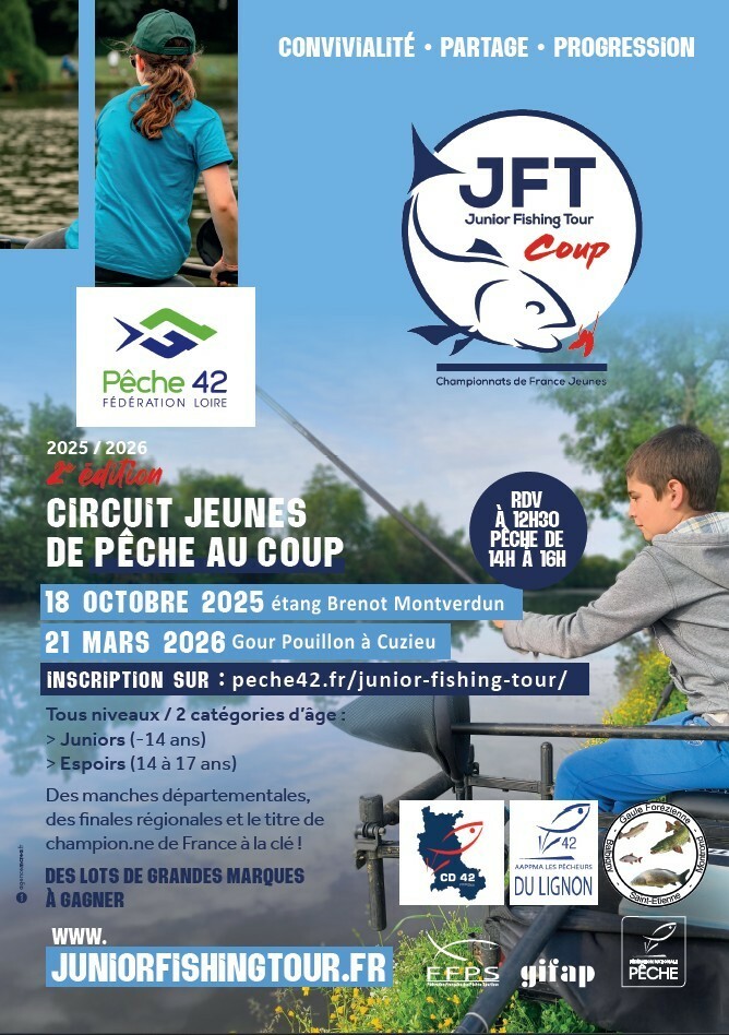 - 10 € par enfant - inscription avant le 14 mars sur : https://peche42.fr/junior-fishing-tour/